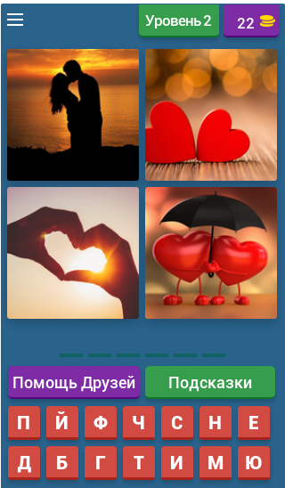 Интересная и увлекательная игра в которой вам предстоит отгадывать слова с помощью 4 фото.
