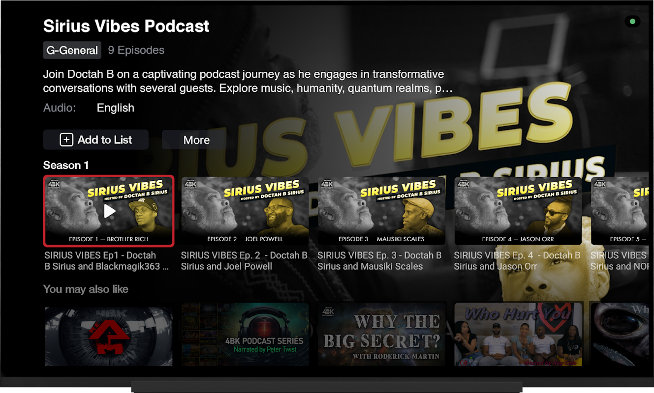 4biddenknow.tv là mạng phát trực tuyến mới với các chương trình tuyệt vời dành cho cả gia đình! Xem các chương trình nấu ăn mới, hội thảo bí truyền và các bài giảng từ khắp nơi trên thế giới! Thưởng thức phim tài liệu về thiên nhiên đáng kinh ngạc! Khoa học cho thấy điều đó sẽ đưa bạn vào cuộc hành trình xuyên vũ trụ đến các lỗ sâu đục rồi quay trở lại trạng thái lượng tử nhỏ nhất của nguyên tử. Xem kiến thức về các tập thăng thiên của các diễn giả mà bạn biết và yêu thích. Tìm hiểu thêm về hình đại diện của bạn và cách phát huy tối đa bản thân trong chiều thứ ba.