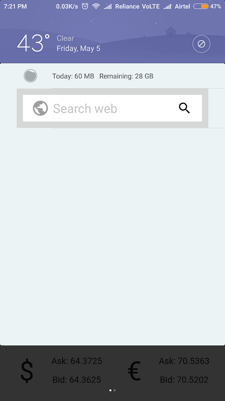 -O- Show quick search bar on the notification bar.