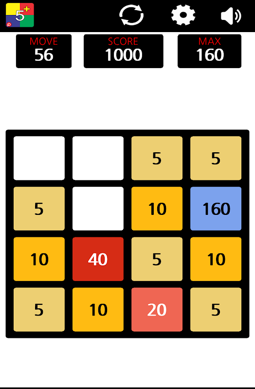 Same numbers add to each other and mingle to single box (5 + 5 = 10). Excited to watch number increasing by hitting each other by moving all direction.