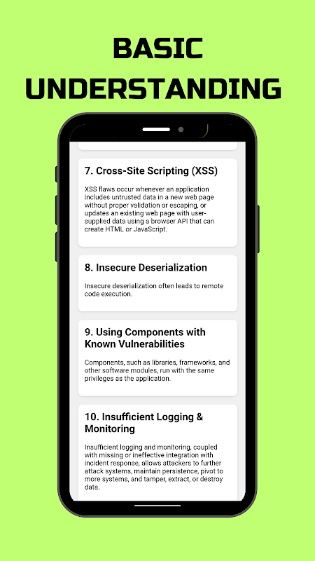 Trao quyền cho bản thân với kiến thức để bảo mật các ứng dụng web của bạn trước các mối đe dọa tiềm ẩn. "OWASP 50" là hướng dẫn toàn diện của bạn về 50 lỗ hổng hàng đầu được Dự án Bảo mật Ứng dụng Web Mở xác định. Cho dù bạn là nhà phát triển, chuyên gia bảo mật hay chỉ tò mò về bảo mật ứng dụng web, ứng dụng này đều cung cấp thông tin chuyên sâu về các rủi ro tiềm ẩn và chiến lược giảm thiểu.