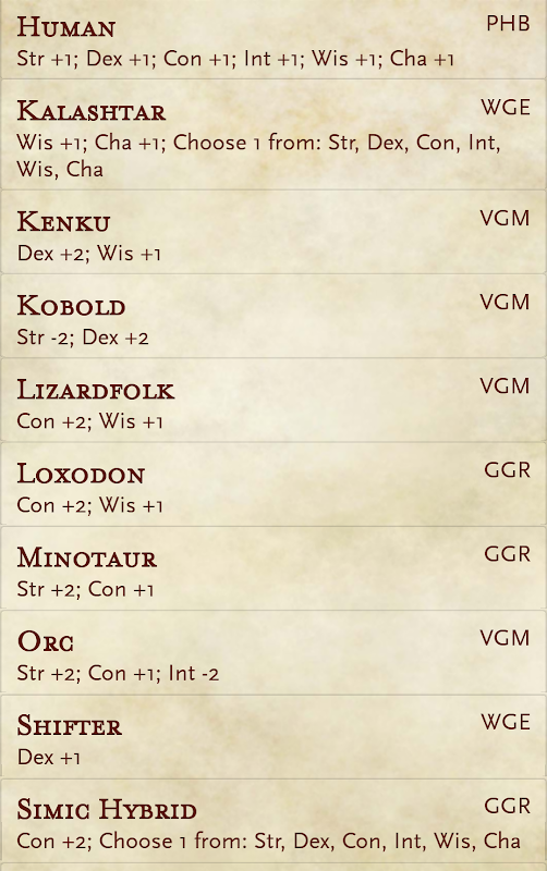 Here you will find an easy reference to every official race, class and background from the D&D 5th edition books.