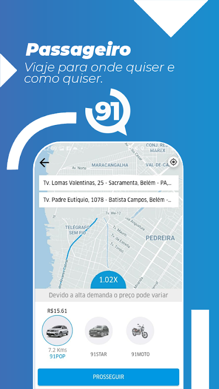 É muito simples pedir viagens pelo app da 91 MOB. Basta abrir o app,