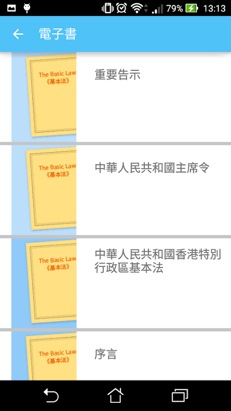 本應用程式設有《基本法》問答遊戲,以互動的形式加深你對《基本法》的認識,並可換取精美的禮品。你除了可以透過本程式隨時隨地查閱《基本法》的內容外,你亦可以查閱其他有關《基本法》的資訊,包括相關的政府新聞公報、宣傳短片以及不同類型的《基本法》推廣活動介紹等。