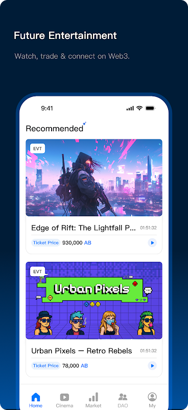 ABE tích hợp công nghệ EVT (Mã thông báo Biến đổi Mã hóa) và NFT (Mã thông báo Không thể Thay thế) để cung cấp cho người dùng khả năng duyệt, xem, đấu giá và niêm yết để bán.
