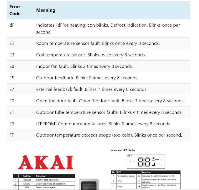 ★ Khắc phục sự cố mã lỗi Akai AC : HVAC
