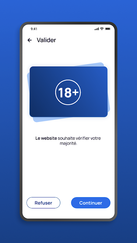Để truy cập các trang web hoặc dịch vụ dành riêng cho người lớn trong khi vẫn hoàn toàn ẩn danh, chỉ có bằng chứng về đa số, không đề cập đến bất kỳ dữ liệu cá nhân nào, được lưu trữ trên điện thoại của bạn.