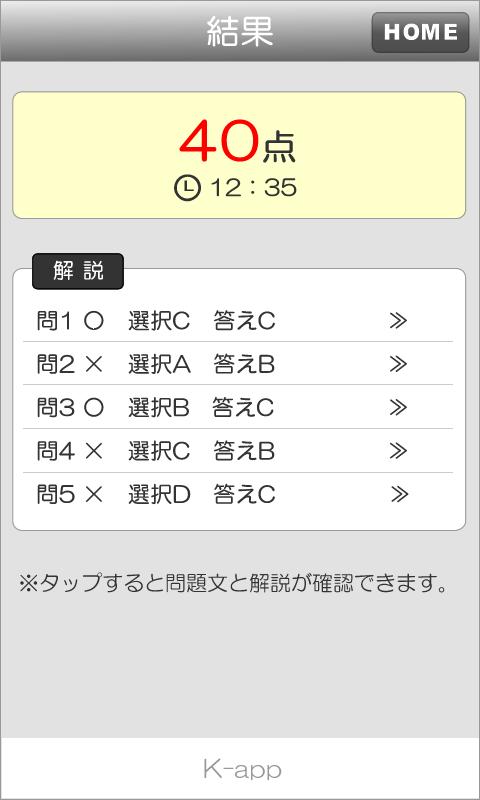 間違えた問題がリストアップされ、簡単な解説を見る事が出来ます。