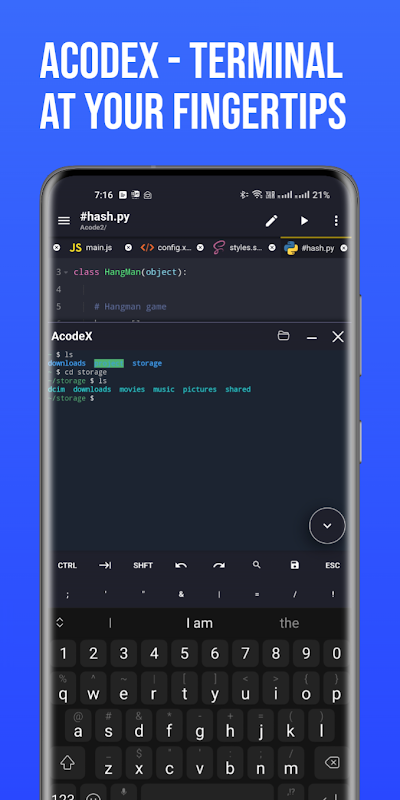 - Trình duyệt tệp trong ứng dụng: Truy cập tệp của bạn trực tiếp trong Acode.