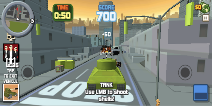Free roam with any car in the city, collect items and use them.