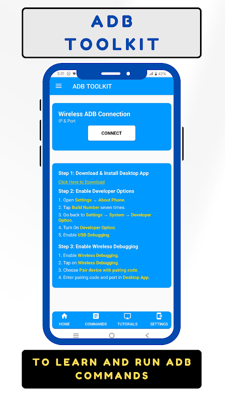 Trong ứng dụng Hộp công cụ lệnh fastboot và shell ADB, chúng ta tìm hiểu các lệnh adb và fastboot. được liệt kê và có thể chạy lệnh adb. Để chạy các lệnh shell và fastboot của ADB phải cài đặt trình điều khiển ADB và bật chế độ Gỡ lỗi USB.