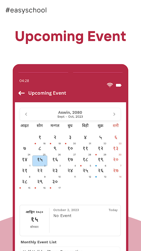 Ứng dụng Easy School là ứng dụng được cá nhân hóa cho lịch, thời khóa biểu, Hoạt động và nhận dạng của trường bạn với trường và logo, và có liên kết trực tiếp đến trang web của trường. Ứng dụng này cũng sẽ nhận được thông báo đẩy do quản trị viên trường bạn gửi để nhắc bạn về các sự kiện sắp tới, cho bạn biết về những thay đổi trong lịch trình, thông báo cho bạn về việc đóng cửa trường và các tin tức khác.