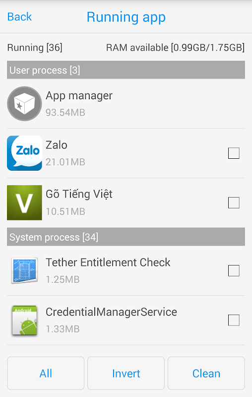 + App chạy ngầm: Phát hiện và làm sạch các ứng dụng chạy ngầm.