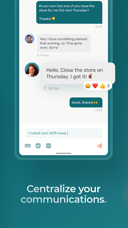 • Giao tiếp dễ dàng với nhân viên của bạn trong các cuộc trò chuyện riêng tư hoặc trong nhóm