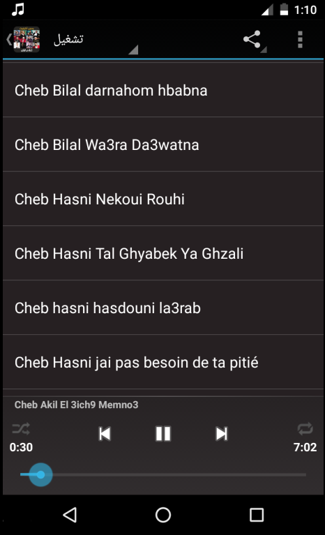 يحمل تطبيق اغاني aghani ray مجموعة من اغاني راي منها :