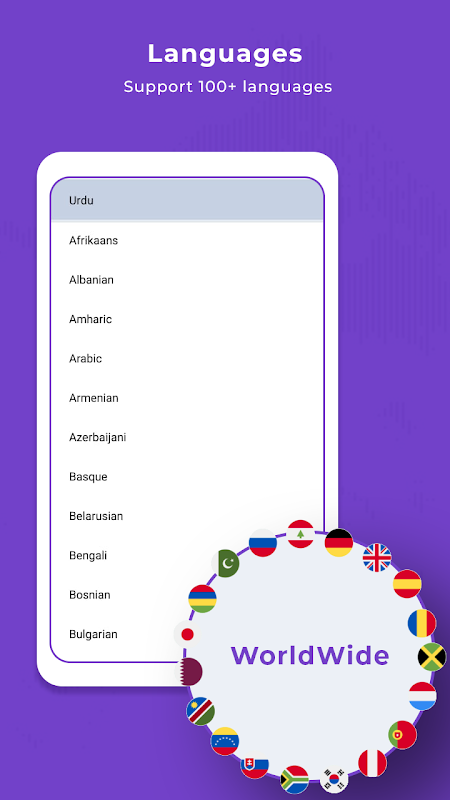 Trình dịch trò chuyện AI để dịch văn bản tất cả các ngôn ngữ. Cắt màn hình và dịch văn bản sang hơn 100 ngôn ngữ. Chọn ngôn ngữ nguồn của văn bản và dịch nó sang các ngôn ngữ khác.