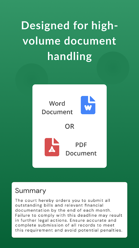 ✅ Phân tích tài liệu pháp lý nhanh - Tải lên tệp PDF, tệp Word hoặc bản quét và nhận thông tin chi tiết tức thì.