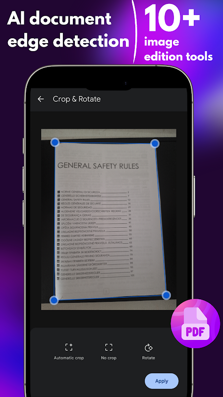 - Quét hỗ trợ AI: Tự động phát hiện các cạnh tài liệu bằng Phát hiện cạnh AI. Nâng cao chất lượng hình ảnh để mang lại kết quả sắc nét, rõ ràng mọi lúc.