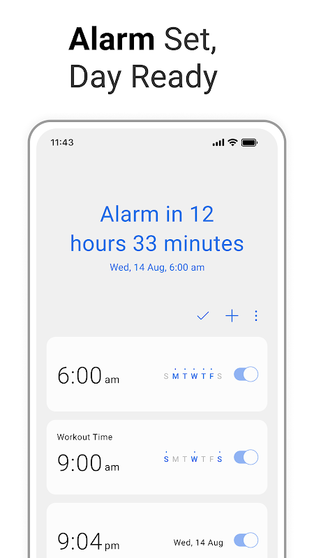 Dễ dàng đặt báo thức với các ngày cụ thể và đối với báo thức định kỳ, bạn có thể bỏ qua một ngày và kích hoạt lại chúng nếu cần. Tính năng Báo lại mang đến sự tiện lợi khi bắt chước nhiều báo thức mà không cần thiết lập thêm.