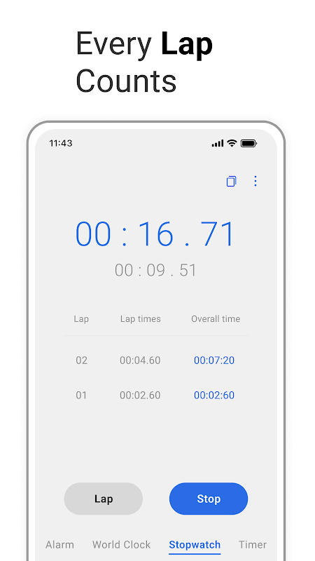 Theo dõi thời gian đã trôi qua trong các khoảng thời gian khác nhau, với tùy chọn lưu và sao chép thời gian đã ghi để tham khảo sau này.