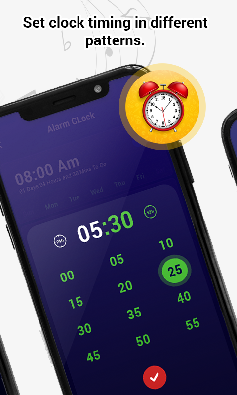 ● Lặp lại báo thức mỗi tuần vào những ngày nhất định. ● Chọn âm thanh báo thức bạn muốn từ tất cả nhạc chuông, bài hát và âm thanh có sẵn trên điện thoại.