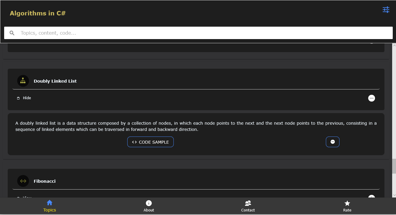 Ứng dụng này nhằm mục đích trở thành một tài liệu tham khảo cơ bản và nhanh chóng cho các thuật toán trong ngôn ngữ C #.