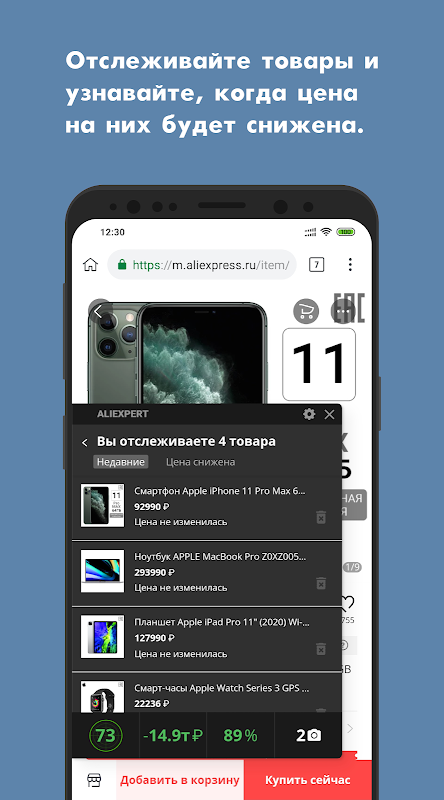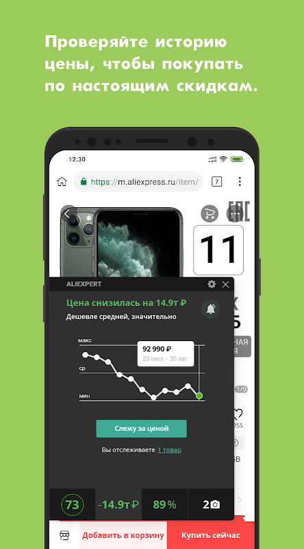 Nhiều người bán hàng trên Aliexpress vì muốn tăng số lượng mua nên thường thực hiện các chương trình khuyến mãi giả mạo. Có nghĩa là, sản phẩm rất nhanh chóng tăng giá và sau đó giảm, thu hút người mua bằng các khoản giảm giá được thực hiện. Nhờ Ali Browser, bạn có thể thường xuyên xem các động thái về giá. Ngoài ra, ưu điểm chính của Ali Browser là số liệu thống kê chi tiết, sử dụng mà bạn có thể xác minh độ tin cậy và trung thực của người bán. Ngoài ra còn có một ưu điểm thứ ba của Ali Browser, đó là nhận các thông báo đặc biệt nếu giá trị của một mục được thêm vào mục yêu thích giảm.