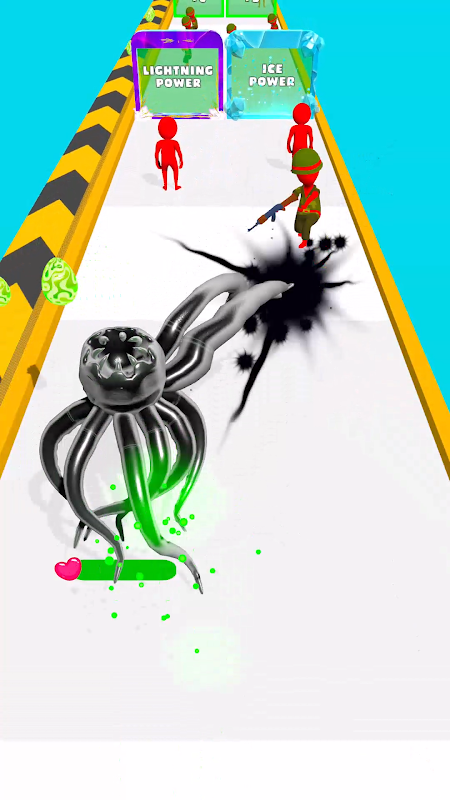 Nhưng đó không phải là tất cả! Khi bạn di chuyển qua nhiều lối đi và chướng ngại vật khác nhau, người ngoài hành tinh của bạn sẽ có được sức mạnh đặc biệt. Gặp phải những địa hình băng giá và khai thác sức mạnh đóng băng hoặc những cú sốc điện dũng cảm mang lại cho bạn khả năng điện khí hóa. Mở rộng tứ chi của người ngoài hành tinh của bạn để tóm lấy con mồi ở xa và lao qua các lối đi để nuốt chửng con người với tốc độ chóng mặt.