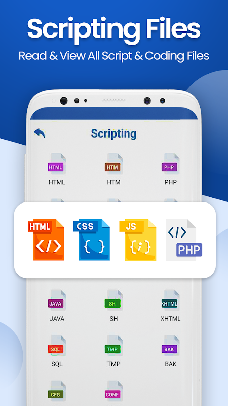 bằng bất kỳ ngôn ngữ nào mà bạn cần học hoặc hiểu. All Documents Reader và All file reader sẽ hỗ trợ bạn học về các ngôn ngữ lập trình máy tính như trình đọc file Php HTML, HTM, word doc, PHP, CSS, JS, ASP, XML, CPP, PYTHON, JAVA, SH, XHTML, SQL, TMP, BAK, CFG, CONF, word doc và nhiều hơn nữa Tất cả tài liệu và trình đọc tệp Php liên quan đến ngôn ngữ máy tính để bạn có thể đọc và xem chúng bằng trình đọc Tất cả tệp và ứng dụng xem tất cả tệp.