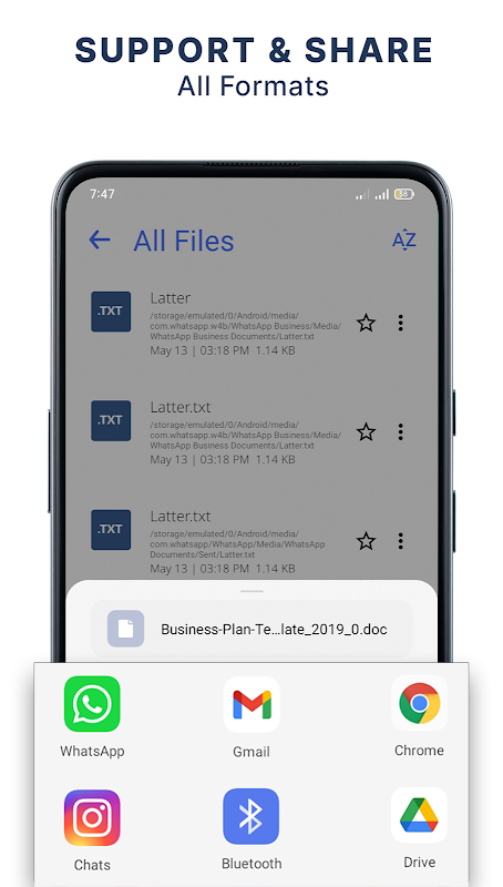 Try All Document Reader! This all-in-one file viewer is perfectly compatible with all Office files, helping you easily process files in all formats, such as PDF, DOC, DOCX, XLS, XLXS, PPT, PPTX, TXT, HTML, XML etc. It can automatically scan the files on your phone, organize them in one place into corresponding folders so that you can search and view them conveniently.