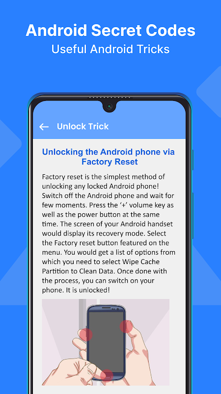 Mobile Secret Codes with Tricks & Tips for Android App giúp bạn khám phá tất cả thông tin hữu ích và các tính năng bí mật của điện thoại thông minh. Tìm hiểu tất cả các bí mật và thủ thuật công nghệ hiện đại dành cho điện thoại Android của bạn. Có một số cài đặt và thông tin ẩn trong ứng dụng Thủ thuật bí mật trên điện thoại chỉ có thể được truy cập bằng cách quay số mã bí mật. Hướng dẫn từng người một được cung cấp cho các mã bí mật bằng các mẹo và thủ thuật của Android.