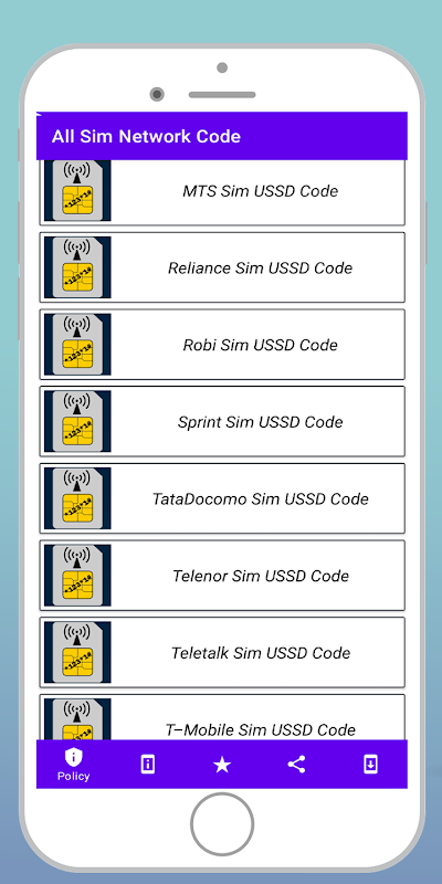 Từ ứng dụng này, bạn sẽ nhận được Tất cả Mã mạng Sim. Nhận thêm mã mở khóa sim puk. Đặt lại tất cả điện thoại di động và mã bí mật. tất cả các mạng sim quốc gia danh sách mã Ussd.