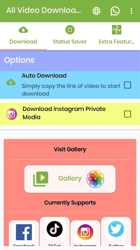 All Video Downloader 2021 allows you to download videos and social media clips from social social webs, You can even download video from Private Instagram Media. App provides clean and elegant gallery designed according to UX Design, Also includes feature of Picture in Picture i,e You can do Video playback in Picture in Picture Mode, You can also save status from WhatsApp and WhatsApp Business in just one click , You can also take Live Video Wallpaper from TikTok or any other Video and enjoy it on your phone 🤗that sounds great and interesting right 😲