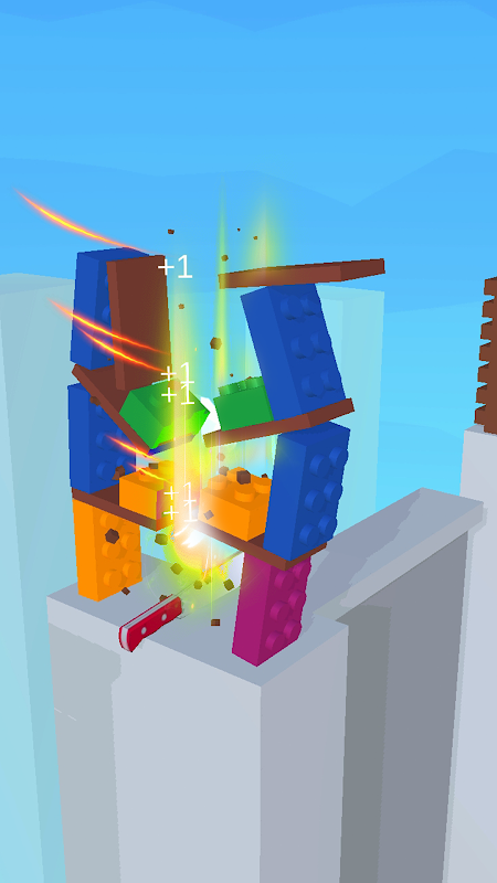 Chạm vào con dao lật và cắt tất cả các chướng ngại vật trong Hầu như cắt để giành phần thưởng lớn.