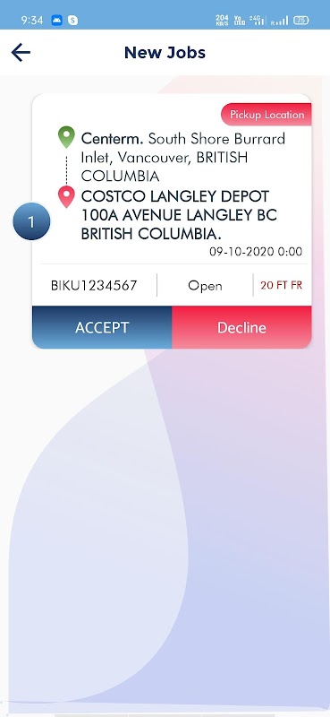 2. List of assigned containers appear after the respected login of the Driver.