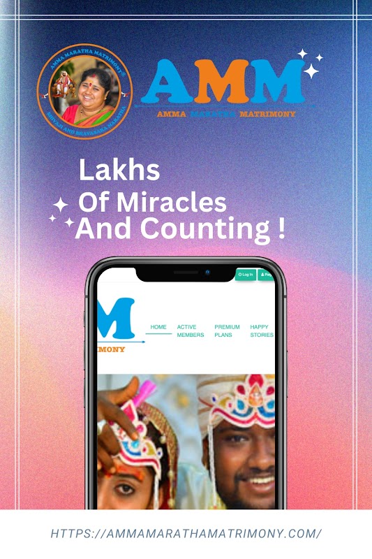 Với bộ sưu tập phong phú gồm hơn 20 vạn hồ sơ, AmmaMarathaMatrimony.com® đang nhanh chóng được công nhận là dịch vụ hôn nhân toàn cầu đáng tin cậy dành cho các gia đình. Trong 19 năm qua, chúng tôi vô cùng tự hào về vai trò mai mối, tạo điều kiện thuận lợi cho vô số cuộc hôn nhân ở Ấn Độ.
