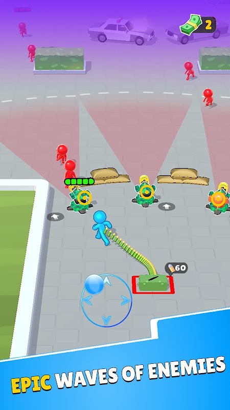 kết nối súng máy và giành chiến thắng trong cuộc chiến chống lại làn sóng kẻ thù, trò chơi chiến thuật thông thường đơn giản trang nhã này đảm bảo sẽ thu hút tất cả các chỉ huy ghế bành và các Napoléon bỏ túi. Tham gia trận chiến chỉ với một 👉 vuốt và xem cậu bé của bạn kết nối súng máy để loại bỏ kẻ thù,