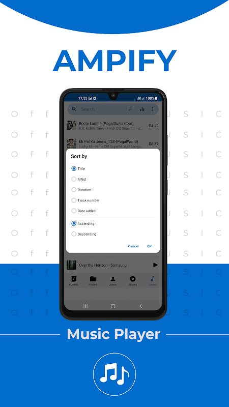 Thưởng thức các bài hát yêu thích của bạn một cách liền mạch với Ampify, một trình phát nhạc ngoại tuyến mạnh mẽ và nhẹ được thiết kế để phát tất cả các tệp nhạc cục bộ của bạn một cách dễ dàng. Trải nghiệm âm thanh chất lượng cao, giao diện trực quan và hàng loạt tính năng giúp việc nghe nhạc trở nên thú vị hơn bao giờ hết!