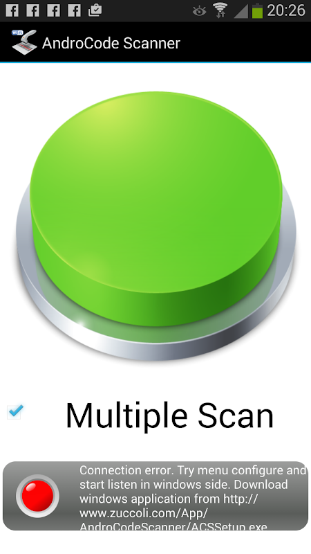 Tải xuống và cài đặt ứng dụng Windows từ URL này http://www.zuccoli.com/App/AndroCodeScanner