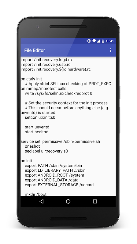EDITING: You can edit plain text files with the built in file editor or your favorite file editors such as "QuickEdit" or "DroidEditor". You can also view images from the built in image viewer or other viewers. If you want to edit image or binary files, you need to first export the files out and edit them with other apps. "HexEditor" has a limitation which prevents my app from sending binaries for direct editing.
