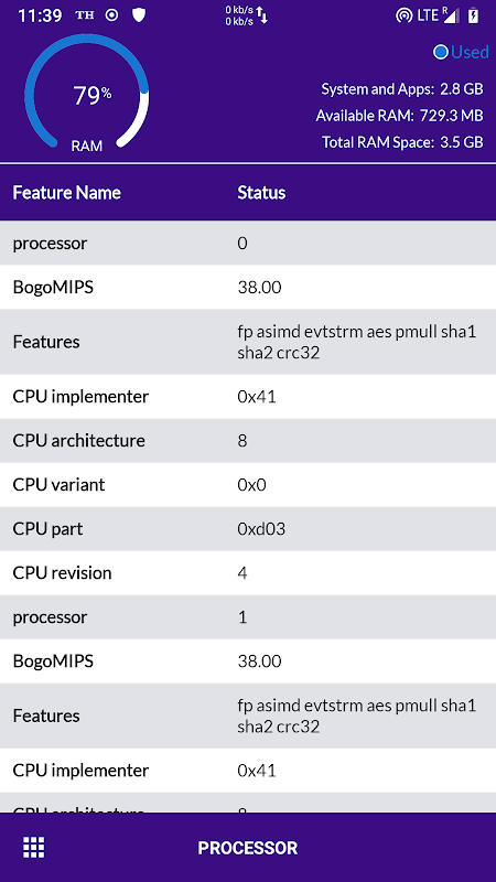 t provides almost all the information of your device according to the hardware and software specifications. It lets you know all the essential details like CPU, GPU, Battery, Screen, Memory, Sensors, Hardware and all the System info and so on.