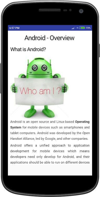 Android Tutorial App is an easy-to-use, user-friendly platform to learn Android, both at the fundamental and advanced level. Become an Android developer also used Android Offline App today!