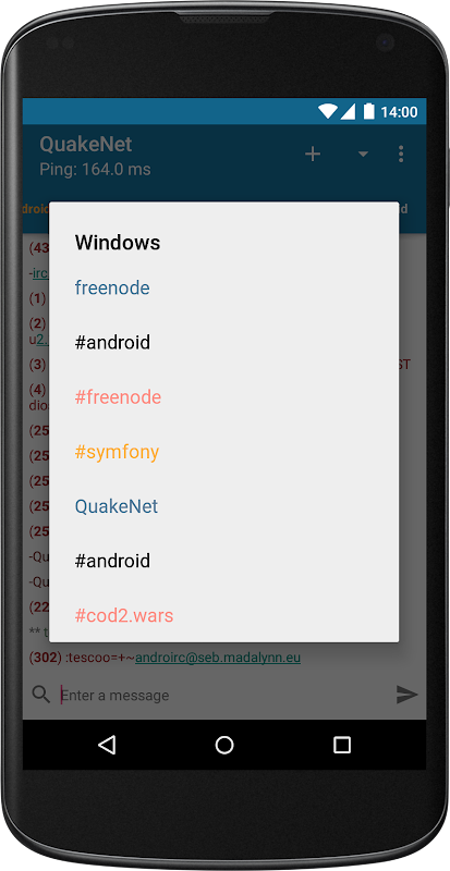 AndroIRC là một khách hàng IRC đầy đủ (Multi-Server, SSL, NickServ, SASL, cá, DCC)