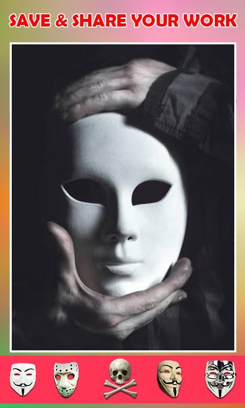 Prank your friends and make scary horror pictures with bloody killer masks and more. You can create your own photo album by snapping pictures with your phone camera and add various "masquerade ball" masks on the images. Try this anonymous photo editor app now.