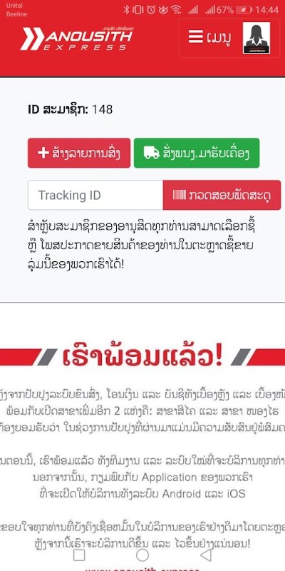Create a Tracking ID, Check your COD balance, Tracking status and manage your shipping item information, you can also request a shipper to pick up your item with our Anousith Mobile app, This app will help you to deliver your shipping item to distance fastest and easier.