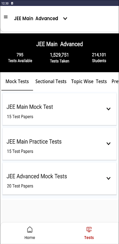 Khám phá loạt bài kiểm tra toàn diện, điều hướng nhiều bài kiểm tra bằng tính năng lựa chọn và tìm kiếm thân thiện với người dùng, tất cả đều có thể truy cập thuận tiện trên một màn hình.