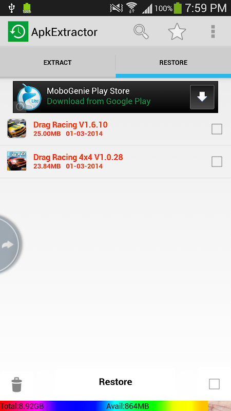 Apk Extractor is used to backup and restore apps for android.