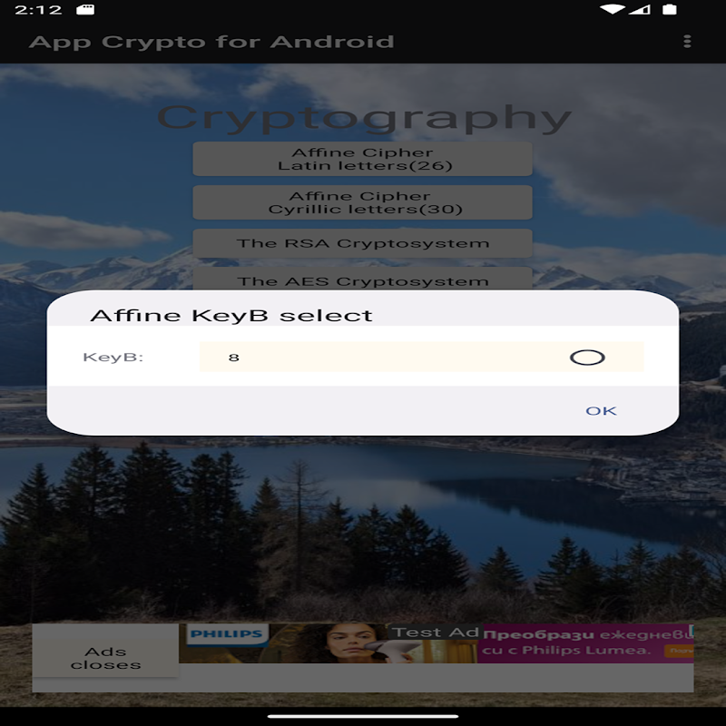 Ứng dụng cung cấp các phương pháp sau để mã hóa và giải mã: hệ thống mật mã affine cho văn bản Latin (26 chữ cái), hệ thống mật mã affine cho văn bản Cyrillic (30 chữ cái), hệ thống mật mã RSA và hệ thống mật mã АSЕ.