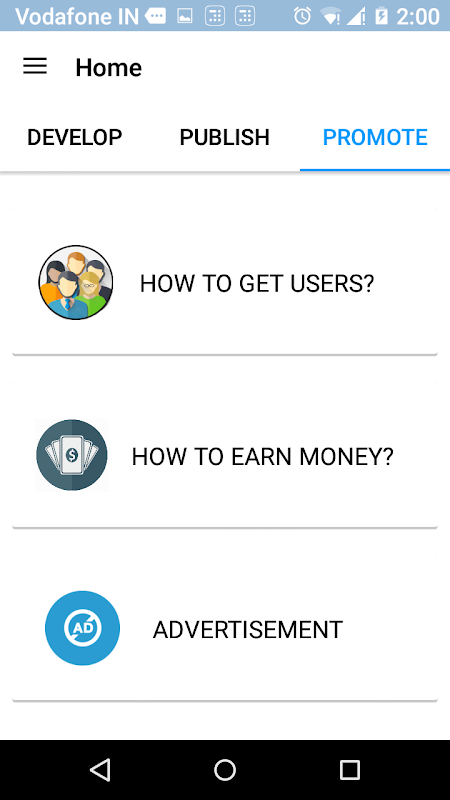 Tutorials are needed to become a developer but a guide is important to become a successful developer. So, we come with an app which act like a guide on how to promote app, earn money and how to advertise your app which are must ingredients to make an app successful along with tutorials for development of an app..