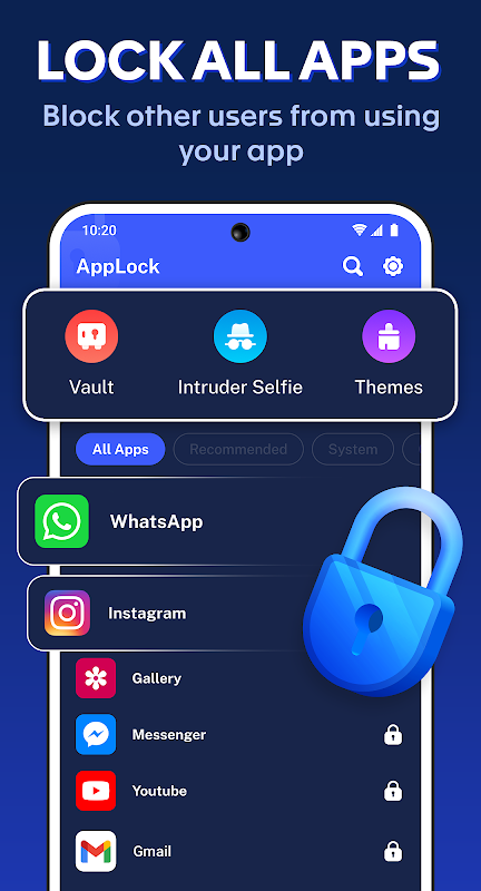 With App Lock, you can lock any app on your phone - from WhatsApp to Snapchat, Instagram to your photo gallery, and even your calculator! 🔐 App Lock is the perfect locker app that keeps all your sensitive information safe and secure. It's easy to use and provides you with complete peace of mind.